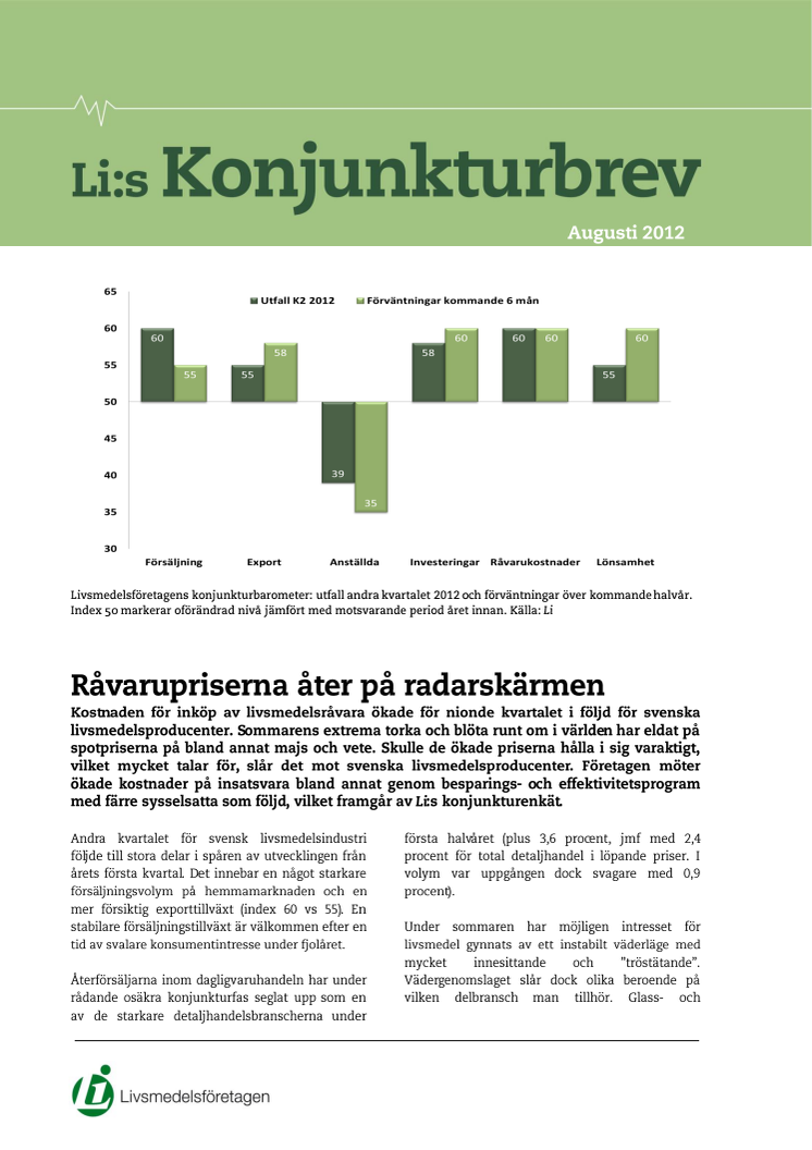 Den svenska livsmedelsekonomin präglas av ökade råvarukostnader, det visar en färsk undersökning som Livsmedelsföretagens (Li:s) chefekonom Carl Eckerdal presenterar idag.