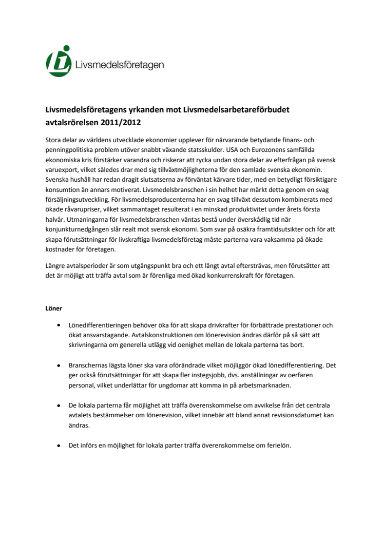 Livsmedelsföretagens avtalskrav överlämnande