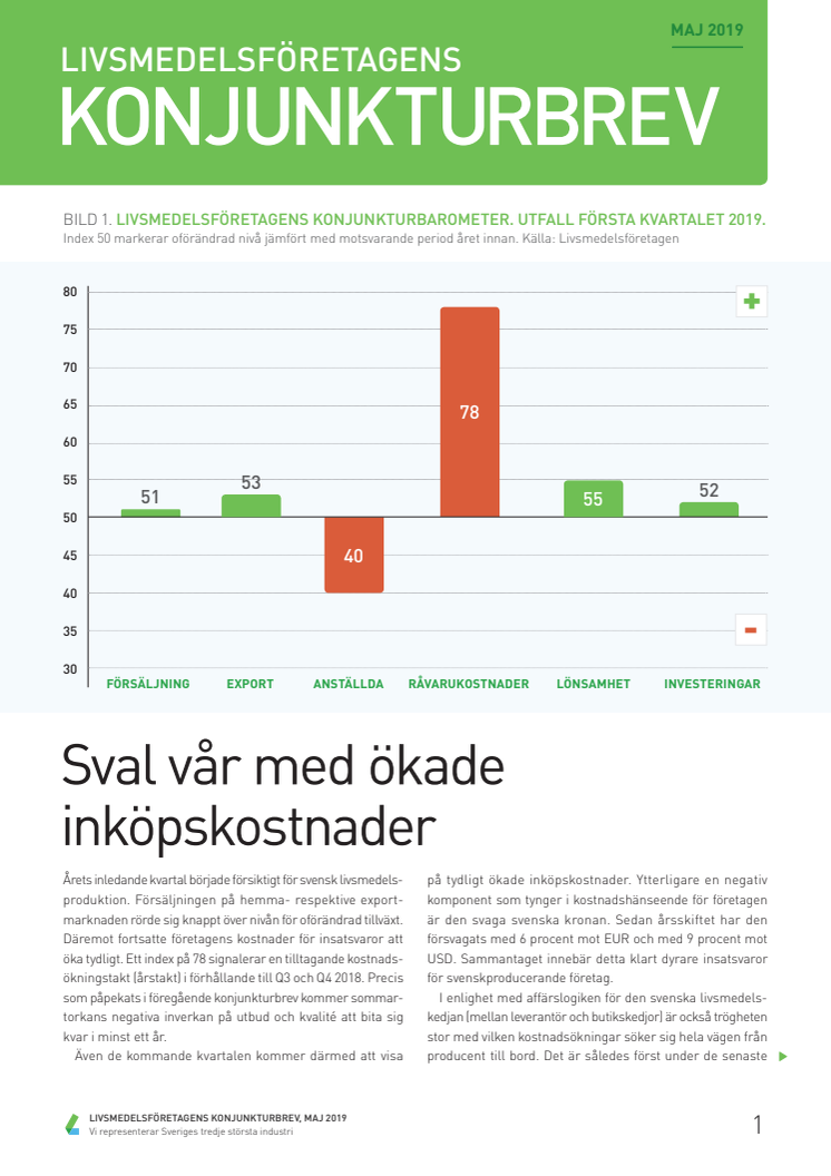 Livsmedelsföretagens Konjunkturbrev Q1 2019