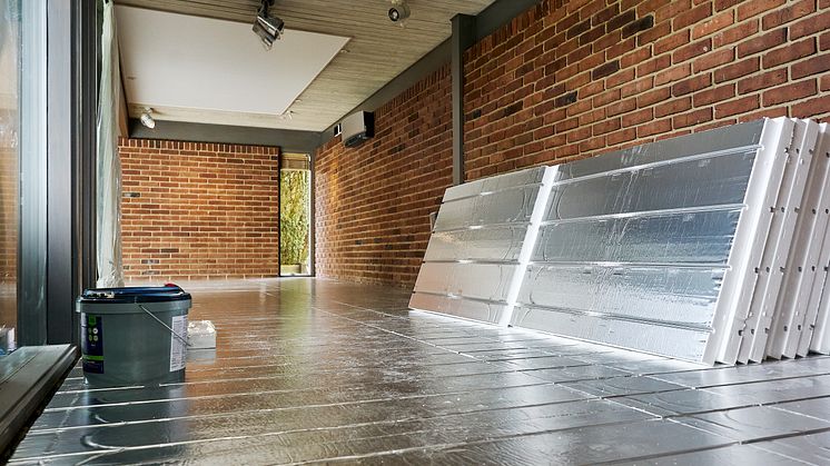 Här ser ni skivan i ett renoveringsprojekt. En villa på ca 300 kvm byggt på 70-talet. Golvvärme har installeras i hela huset som innan hade takvärme.