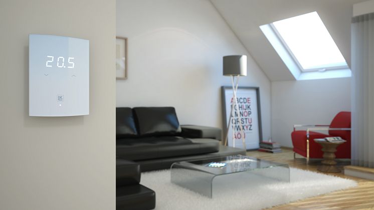 LK Rumstermostat S2 har en modern design med en glasaktig yta och en tilltalande vit dioddisplay.Termostaten är försedd med touchknappar vilket förhöjer det rena och diskreta utseendet. LK Rumstermostat S2 är vår nya standardtermostat som installeras med LK Golvvärme. Termostaten är också lämplig i offentliga miljöer då temperaturinställningen kan låsas med en enkel kombinationstryckning.