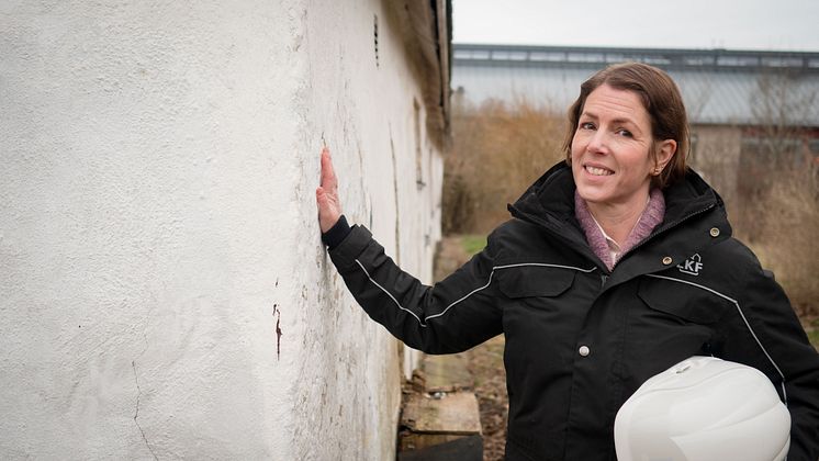 Byggprojektledaren Anneli Olkvist vid den kulturhistoriska mangårdsbyggnaden.