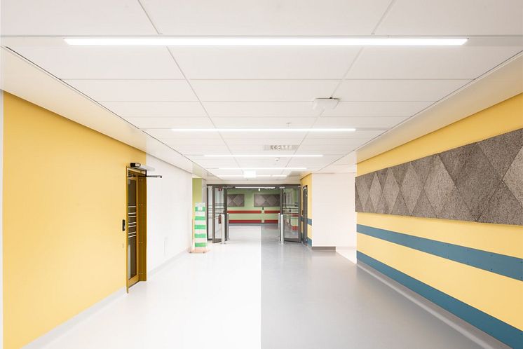 Väggabsorbenter i O-huset, Karolinska Universitetssjukhuset i Huddinge.