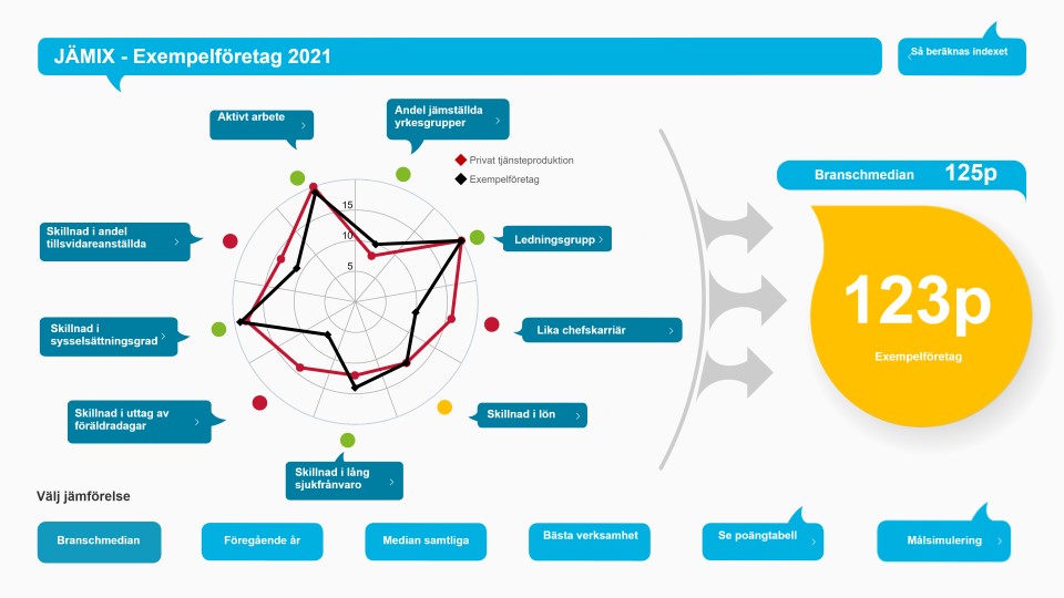 JÄMIX är ett jämställdhetsindex som visar hur jämställt ett företag är utifrån olika nyckeltal. I JÄMIX 2018 uppnådde Locum 144 poäng, ett mycket bra resultat i förhållande till fastighetsbranschens median på 110 poäng. Här kan du läsa mer om Nyckeltalsinstitutet och JÄMIX.