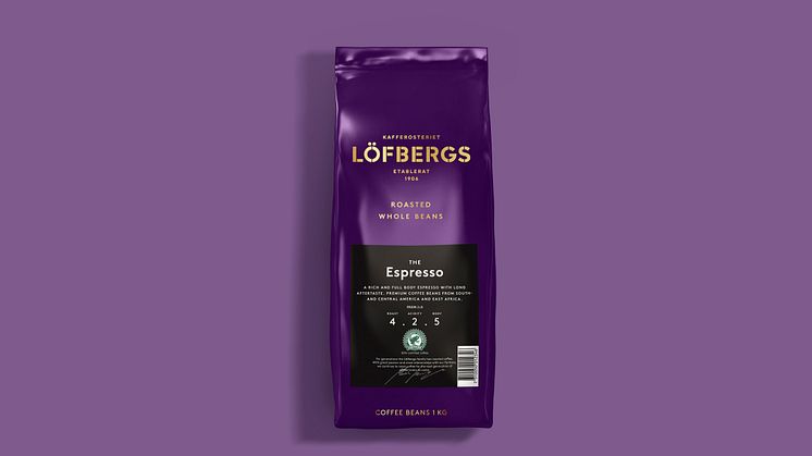 Försäljningen av hela bönor skjuter i höjden i svenska livsmedelsbutiker. Då passar kafferosteriet Löfbergs på att lansera en ny 1 kg-förpackning med noga utvalda premiumbönor från Syd- och Centralamerika samt Östafrika. Resultatet heter The Espresso och är en fyllig och kraftfull espresso med lång eftersmak. Finns att köpa på ICA, COOP och City Gross från och med vecka 34.