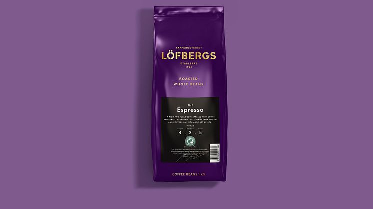 Försäljningen av hela bönor skjuter i höjden i svenska livsmedelsbutiker. Då passar kafferosteriet Löfbergs på att lansera en ny 1 kg-förpackning med noga utvalda premiumbönor från Syd- och Centralamerika samt Östafrika. Resultatet heter The Espresso och är en fyllig och kraftfull espresso med lång eftersmak.