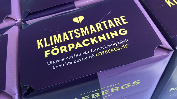 Nu finns den ute i butik: Löfbergs nya klimatsmartare förpackning. Genom att ersätta delar av den fossila plasten med ett växtbaserat alternativ minskar klimatpåverkan initialt med dryg 30 procent.