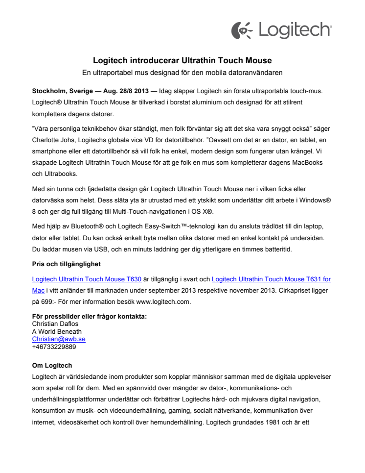 Logitech introducerar Ultrathin Touch Mouse