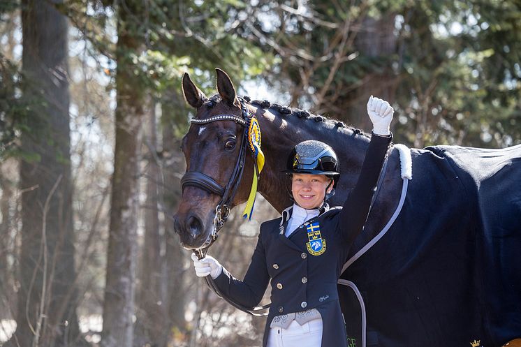 Innan säsongstarten har Evelina Söderström i år även varit bästa svensk i Lövsta Future Challenge International Tour, med en fjärdeplats under tävlingarna i Jumping Amsterdam och Gothenburg Horse Show. Dagens vinnande ritt belönades med flera åttor för bland annat piaff och travökningar, slutresultatet landade på 69.657%.