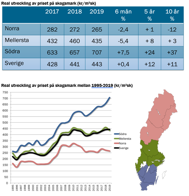 Real utveckling - Skogsmarkspriser halvår 2019