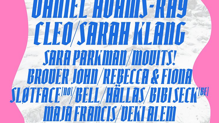 Rebecca & Fiona har sedan 2010 varit två av de mest framträdande figurerna på den svenska dansmusikscenen och gör nu ett kärt återseende på festivalen. Hypade Deki Alem gjorde nyligen internationell succé när de valdes till Europas hetaste liveakt under Eurosonic i Nederländerna. Även Hällas har fått musikkritiker över hela världen att jubla, och är med sin blandning av 70-talsrock, metal och psykrock ett av svensk rocks stora framtidsnamn. Dessutom; Movits!, Broder John, Maja Francis, Bavé, Waterbaby, MOLØ, Viggo Dyst, Hannah Prescott & Vanilla och Magnus Larsson.