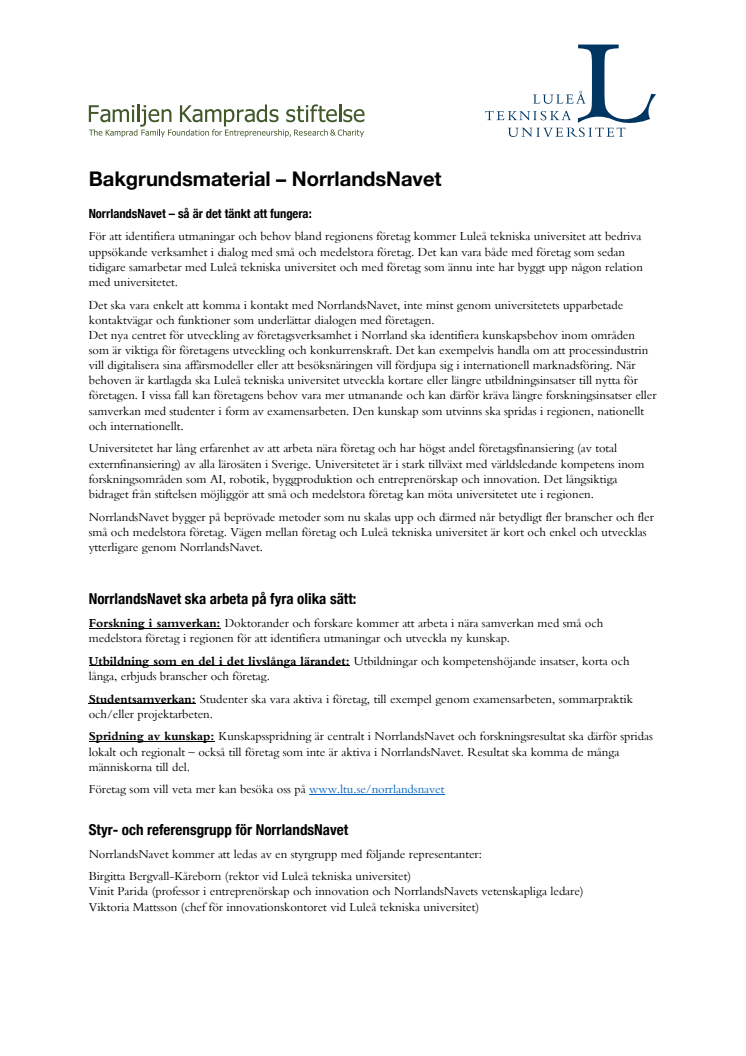 Mer om hur NorrlandsNavet är tänkt att fungera, samt information om vilka som sitter i styr- och referensgrupper.