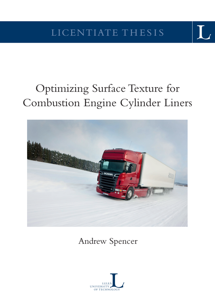 Optimizing Surface Texture for Combustion Engine Cylinder Liners- Licentiatavhandling av Andrew Spencer, doktorand vid Luleå tekniska universitet.