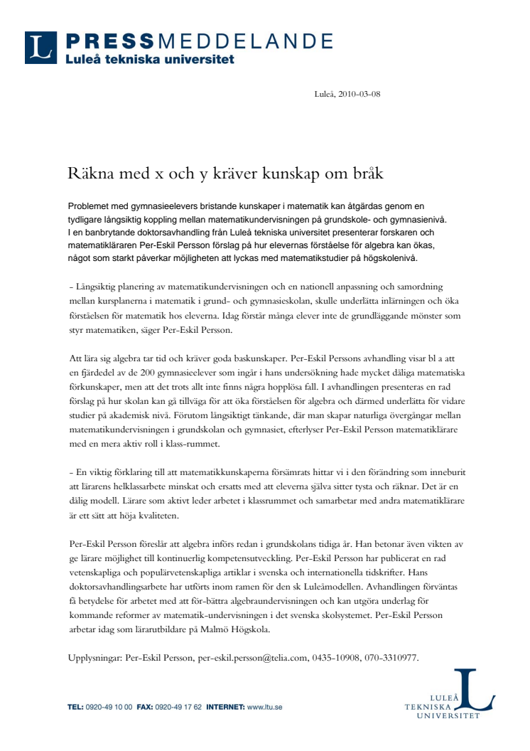 Fokus på ökad förståelse för algebra i ny doktorsavhandling vid Luleå tekniska universitet.
