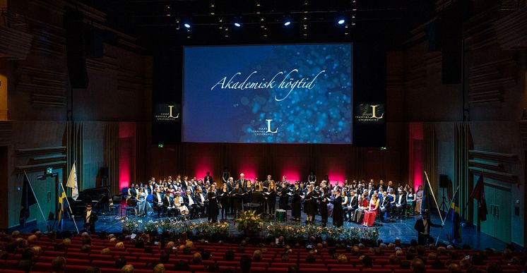 Kammarkören från Musikhögskolan vid Luleå tekniska universitet vid akademisk högtid i maj 2022.