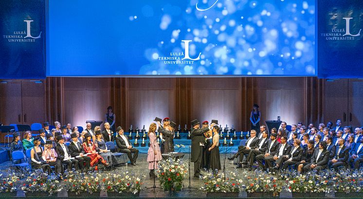 Fyra hedersdoktorer, tio filosofie doktorer och 38 teknologie doktorer fick sin doktorshatt, fem nya professorer installerades och tre nya adjungerade professorer hälsades välkomna under ceremonin i Kulturens hus.