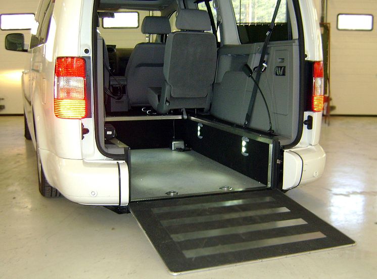 Volkswagen Caddy som underlättar för transport av rullstolsburna, och som säkerhetstestats av studenter, knutna till Luleå tekniska universitets kompetenscenter CASTT