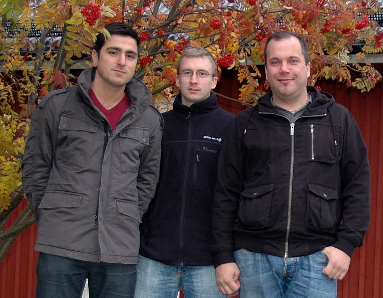 Maikel Nano, Jakob Hultkvist och Urban Grundström, studenter vid Luleå tekniska universitets kompetenscenter CASTT som gjort säkerhetstester av en ny handikappanpassad VW Caddy.