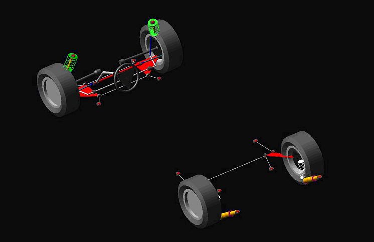 För att kunna testa väghållning, som en del av säkerhetstestet, byggde studenterna upp en komplett modell av hjulupphängningen i simuleringsprogrammet ADAMS/Car