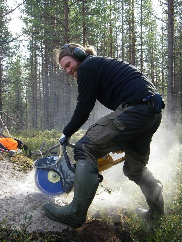 Fältarbete ingår även i 4D projektet och här tar doktoranden Johan Bauer prover med hjälp av en stensåg