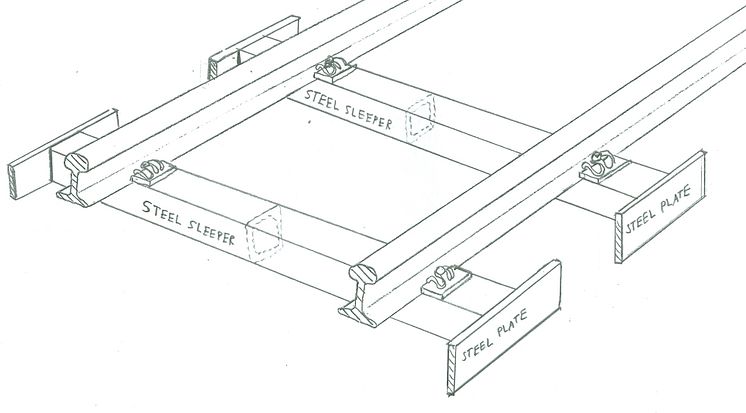 Skiss av slipers i stål för eventuell framtida användning i spårväxlar på idé av professor Jan Lundberg, Luleå tekniska universitet.