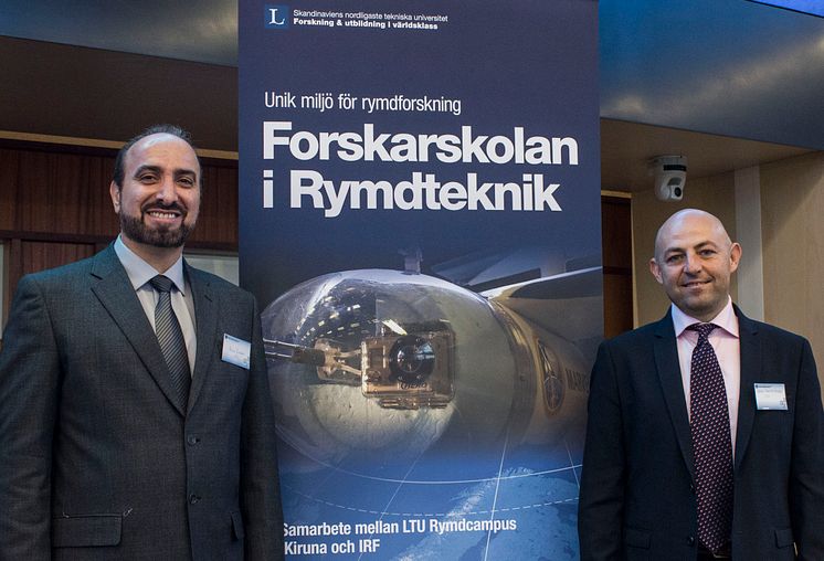 Två nya framstående professorer inom rymdområdet vid Luleå tekniska universitet, t.v. professor Reza Emami från Kanada som skapar ett helt nytt forskningämne, rymdtekniska system vid Luleå tekniska universitet och Javier Martin Torres, professor i atmosfärvetenskap från Instituto Andaluz de Ciencias, Spanien.