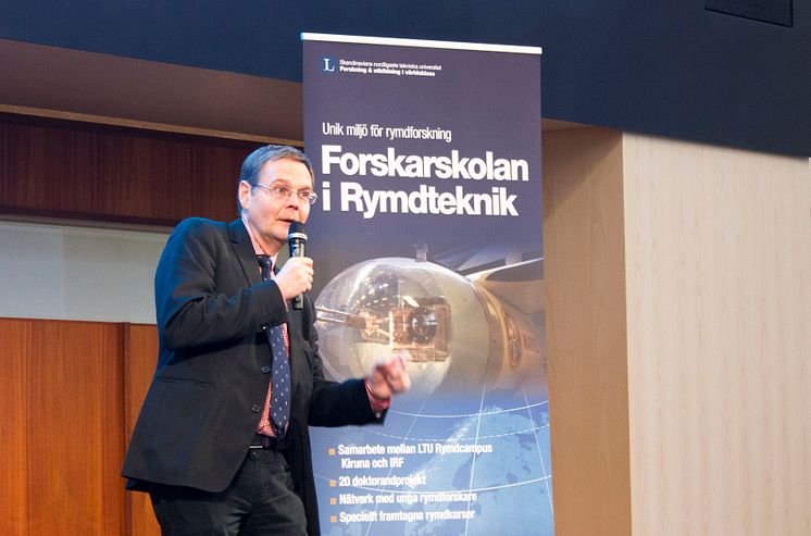 Johan Sterte, rektor vid Luleå tekniska universitet öppnade dagens Kick-Off med universitetets satsning på rymdforskning och med flera företag inom rymdindustri på plats.