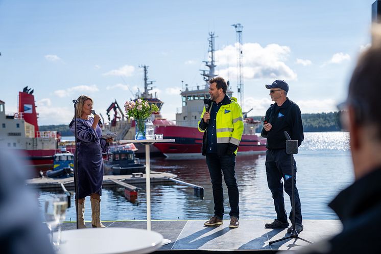 Li Skarin samtalar med driftchef Markus Andersson och befälhavare Mikael Rönnbäck