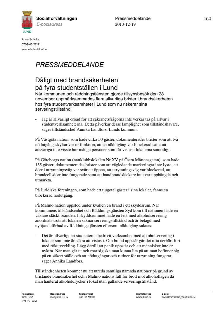 Dåligt med brandsäkerheten på fyra studentställen i Lund
