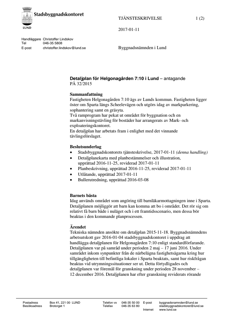 Tjänsteskrivelse för Allhelgonagården 7:10 vid Sparta i Lund