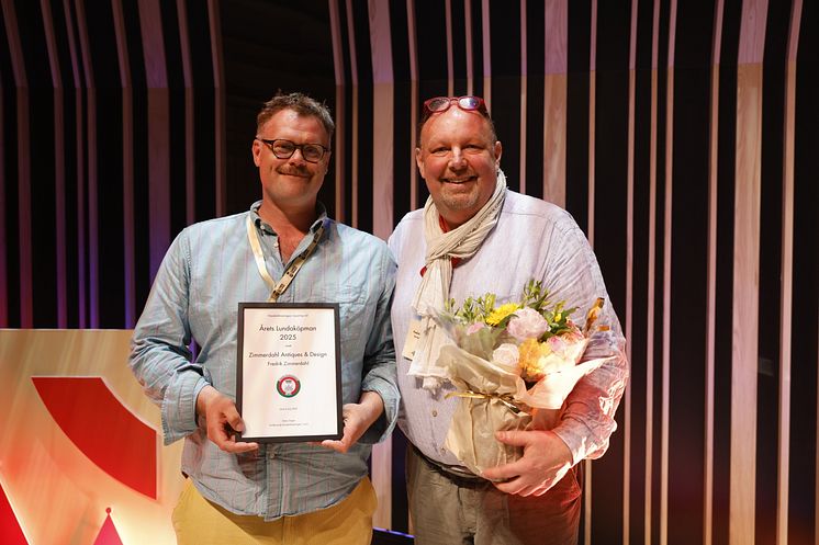 Årets Lundaköpman 2025 tilldelas Zimmerdahl Antiques & Design - Fredrik Zimmerdahl och Jens Thomá.