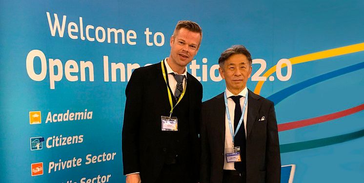 Karl McFaul, Lunds kommun, med Noboru Konno från den japanska delegationen som nu besöker Lund.