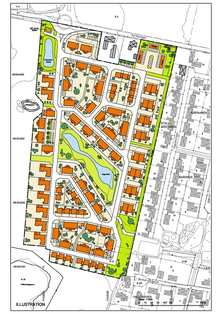 Planillustration för Genarp Genarp 9:12 och 9:7 som visar planerad bostadsbebyggelse. Samrådsskede.