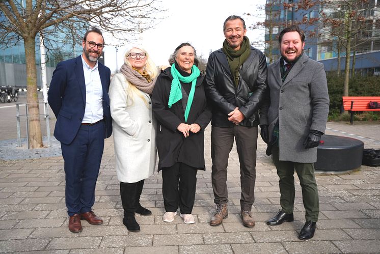 Lunds idrottschef Michael Holmkvist, ordförande i PIL Marianne Lager, pristagare Karin Prellner, pristagare Michel Grant och kultur- och fritidsnämndens ordförande Sebastian Jaktling (S).