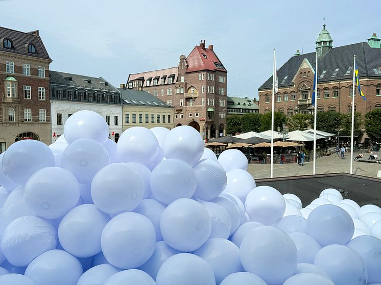 Konstverket Staden andas ut mot Stortorget i Lund