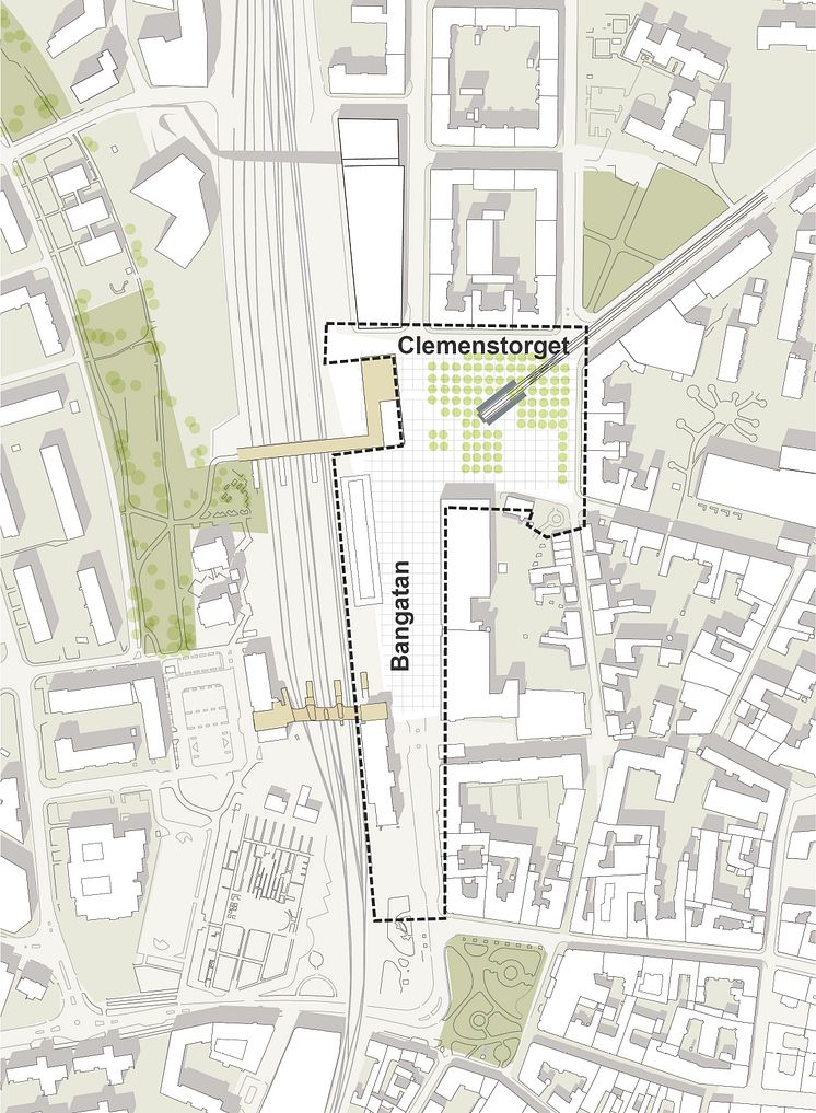 Tävlingsområdet: Arkitekttävlingen för utformning av Clemenstorget och Bangatan