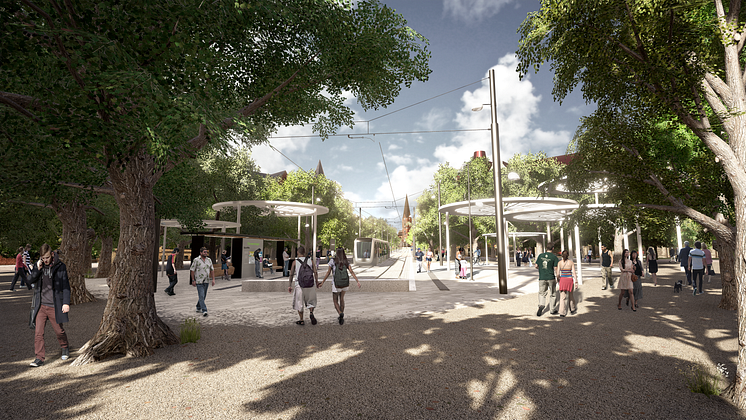 Visionsbild: Spårvagnshållplats Clemenstorget. Byline: Lunds kommun