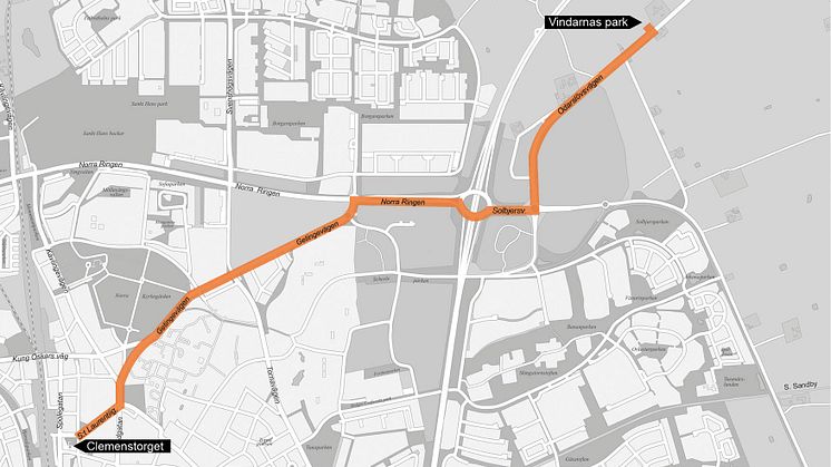 Ekipaget kommer att ha bred last och ska köra långsamt från Clemenstorget via S:t Laurentiigatan, Getingevägen ut, upp till Norra Ringen, förbi E22, och sedan vidare via Odarslövsvägen – fram till Vindarnas park på Brunnshög (se den bifogade kartan).