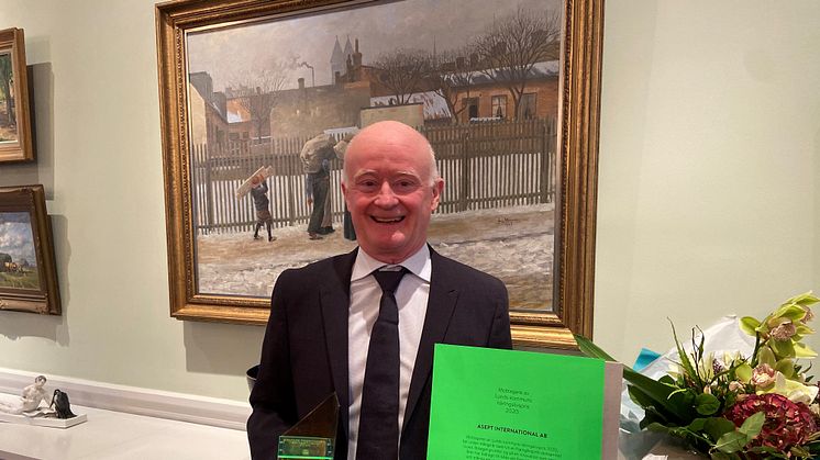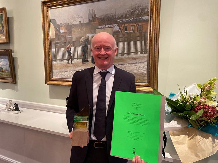 – Det är med glädje jag idag delar ut Lunds kommuns näringslivspris för första gången. Hade sett fram emot att dela ut detta pris på Lund Grand Prix till Asept, som är en mycket värdig vinnare, men nu är läget som det är och jag hoppas att Aspet fortsätter på inslagen väg med innovationer som leder till ett hållbart samhälle, Philip Sandberg (L), kommunstyrelsens ordförande i Lunds kommun.