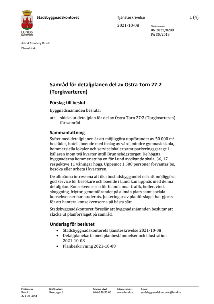 Astrid Avenberg Rosell, planarkitekt, stadsbyggnadskontoret, 0729-81 62 56, astrid.avenbergrosell@lund.se