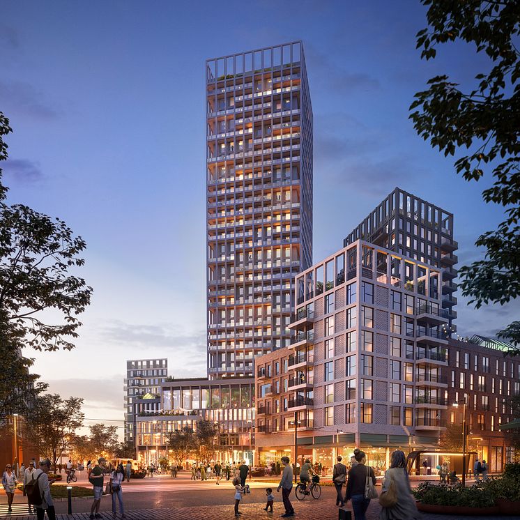 Förutom det högsta huset planeras ytterligare byggnader i kvarteren som kommer att vara mellan 1 och 17 våningar. Tanken är att husen ska vara som lägst närmast torget. Bottenvåningarna får lokaler för bland annat butiker, caféer och restauranger med uteserveringar på torget. Bostadsgårdarna planeras bli underbyggda med källargarage och gårdarna ska utformas för lek och vistelse och med så mycket växtlighet som möjligt. För att det ska vara enkelt att lära känna sina grannar är det bra om man kan nå via gården sitt trapphus.