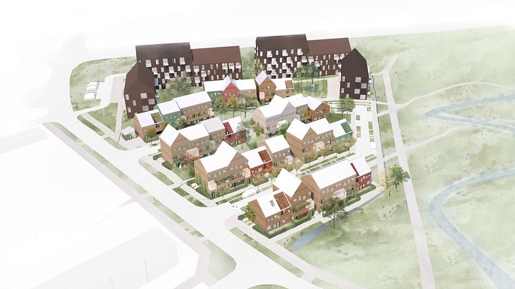 Den lekfulla variationen av material och arkitektur tillsammans med anpassningen till området och den terrasserade marken söder om Dalbyvägen var avgörande när juryn utsåg vinnaren av markanvisningstävlingen för den östra delen av Södra Råbylund.