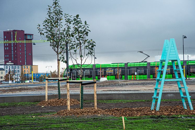 Stora delar av spårvägsstråket förnyas med ombyggda gator och torg samt entréer som vänds mot spårvägen. Spårvägen stimulerar också utbyggnaden av stadsmiljöer, bostäder och kontor, framförallt i den nya smarta stadsdelen Brunnshög. År 2050 kommer det att bo och arbeta ytterligare 50 000 människor i spårvägsstråket.