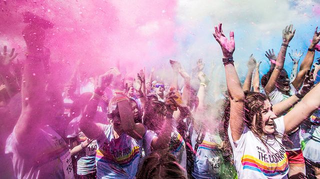 Tusentals förväntansfulla människor i vita kläder och löparskor. Pumpande och peppande musik, uppvärmning, och PANG – där går startskottet och de är iväg! Efter någon kilometer färgas himlen, luften, gatan och alla löparna rosa, blå, gula och gröna. Detta upprepas tre gånger till under loppets fem kilometer. Vid målgång dansar tusentals trötta, lyckliga och färgsprakande löpare tillsammans. De har förmodligen just upplevt sina lyckligaste fem kilometer någonsin.