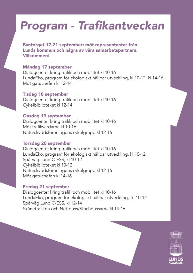 - En levande stadskärna är beroende av människor som tar sig fram till fots och fotgängarna i sin tur söker sig till miljöer som är trygga, stimulerande och trivsamma. För oss, som arbetar med att utveckla både trafiken och miljöerna i Lunds stadskärna är Trafikantveckan en möjlighet att pröva och se vad som kan utveckla staden till det bättre, säger gatuchef Per Eneroth.