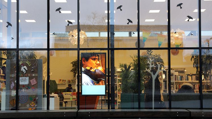 Plats Klostergårdsbiblioteket i Lund, på torget mellan biblioteket och kyrkan.