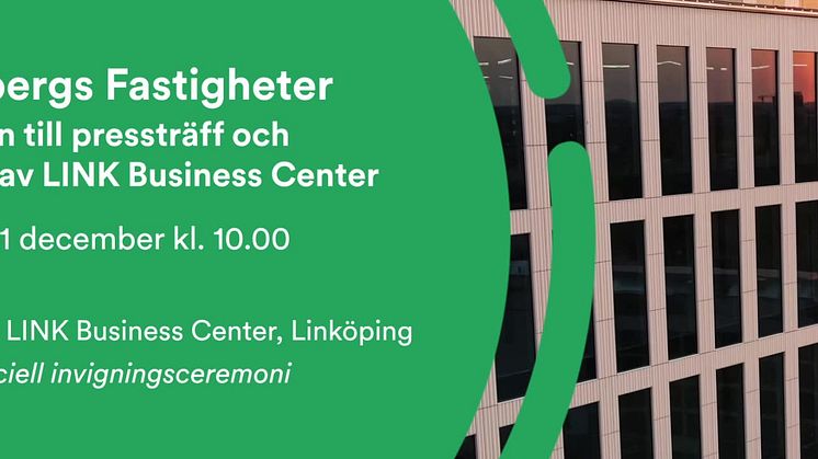 Lundbergs Fastigheter bjuder in till pressträff i samband med invigningen av LINK Business Center i Linköping. Pressträffen äger rum innan den officiella invigningsceremonin som startar kl. 11.00. Efter invigningen erbjuds media rundvisning av fastigheten.