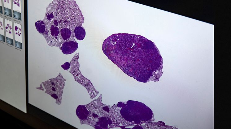 • Exempel på vävnadsprov fr olika delar av lunga m cancer de mörka partierna är tumörer.jpeg