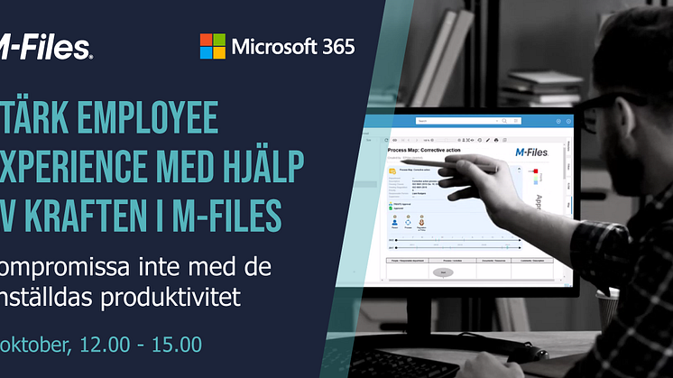 Den 6 oktober bjuder M-Files tillsammans med Microsoft in dig till ett event om hur man kan effektivisera företagets processer och frigöra tid att fokusera på de uppgifter som inte går att automatisera. Vi utforskar de senaste trenderna och teknologierna inom informationshantering, med fokus på kraften i M-Files plattform och hur den kompletterar Microsoft 365. Vi visar också hur artificiell intelligens (AI) kan hjälpa företaget att hantera och automatisera informationsflödet.