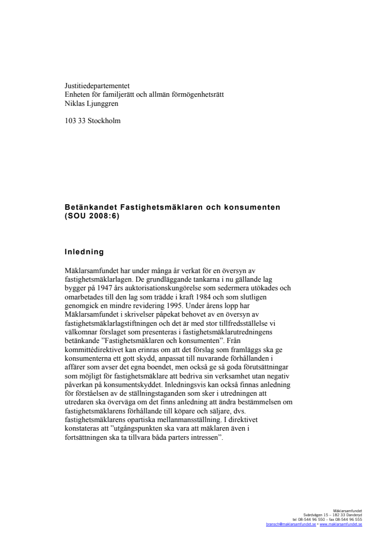 För att läsa Mäklarsamfundets remissyttrande i sin helhet gå in på www.maklarsamfundet.se.